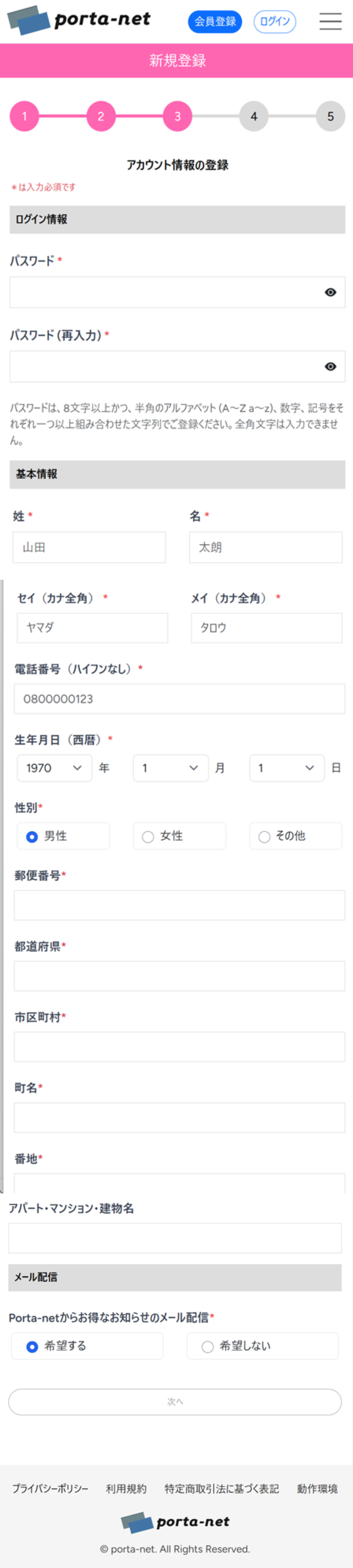 Porta-net会員規約をお読みいただき『Porta-net会員規約に同意する』にチェックを入れて『次へ』をクリックしてください。